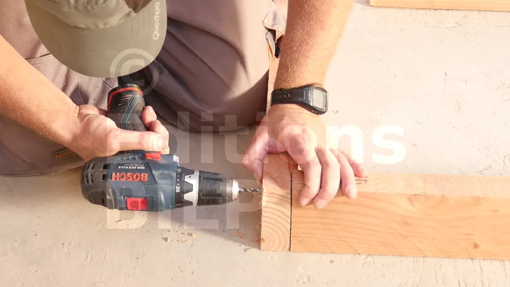 Maintenez les deux montants adjacents des deux demi-murs à l’aide de serre-joints avant de percer les trous.