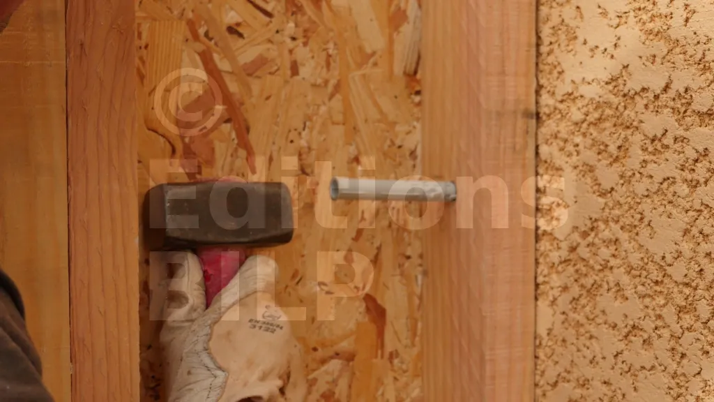 Les montants et leurs renforts sont solidement fixés l’un à l’autre à l’aide de pointes sur leurs deux faces, espacées d’environ 20 cm.
