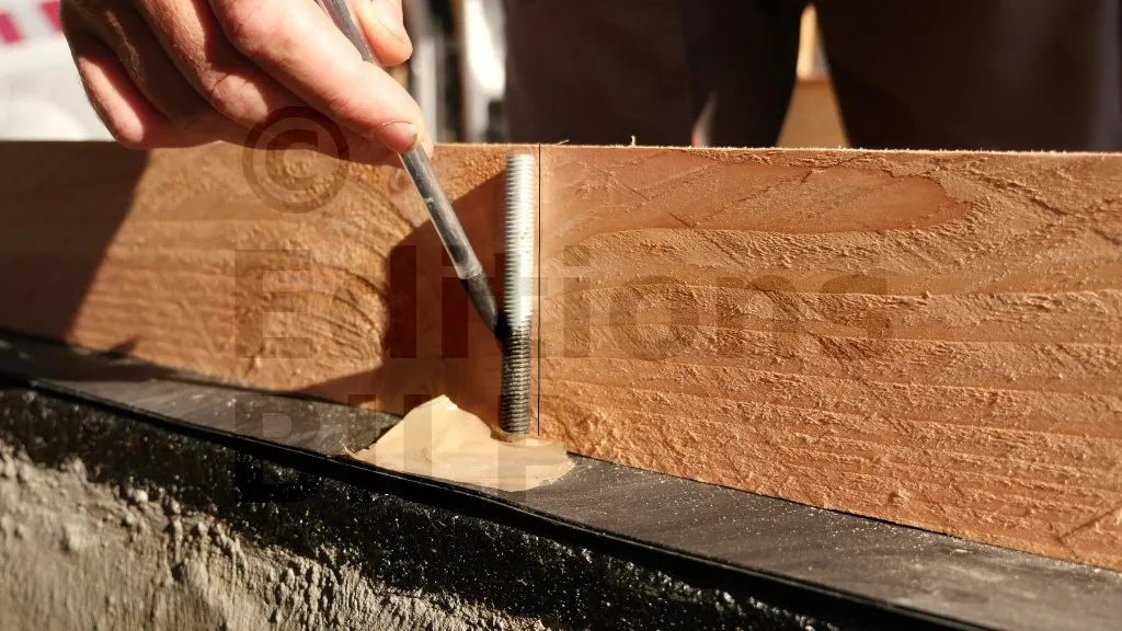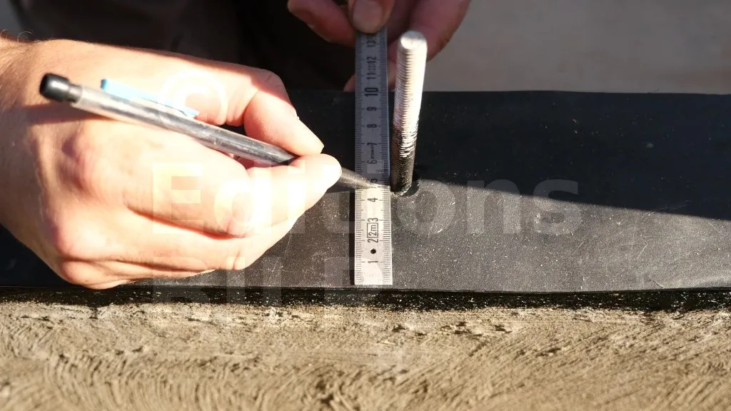 Poser la lisse basse à coté des tiges filetées déjà ancrées puis tracer le diamètre des tiges sur la lisse.