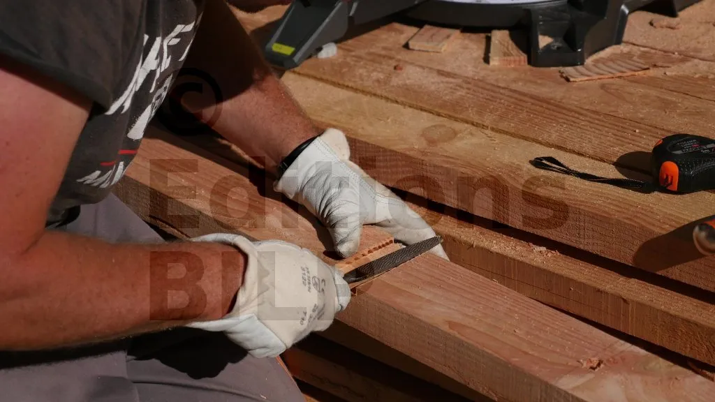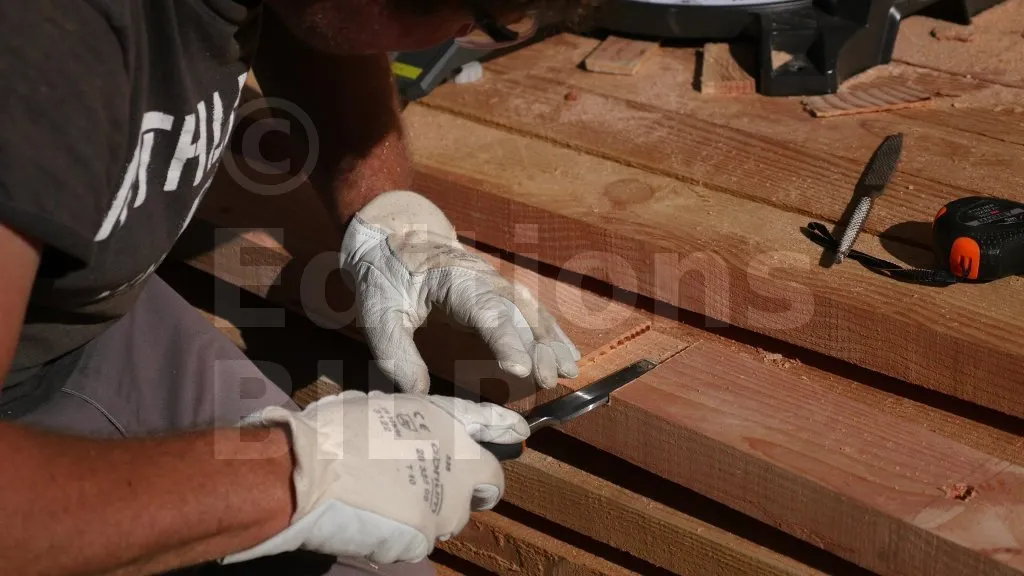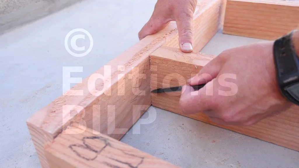 Réaliser des encoches mi-bois sur les lisses basses (1 min)