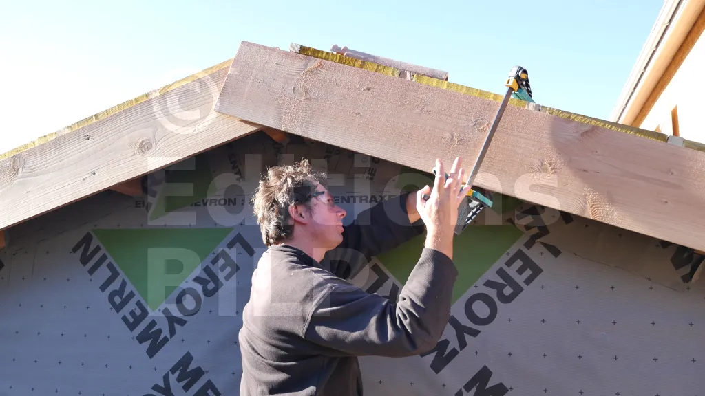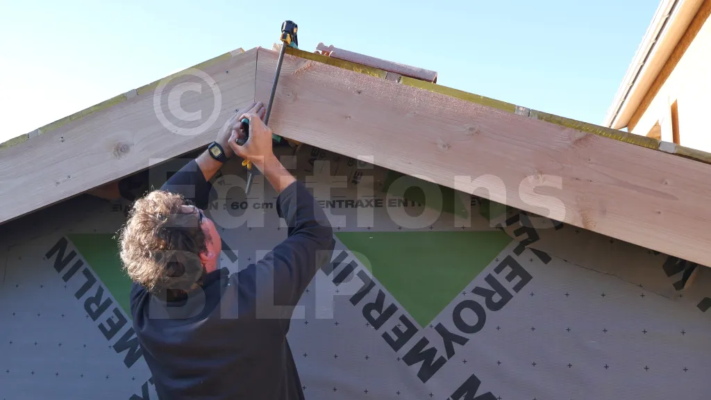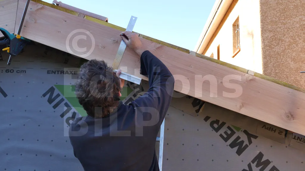 Il est possible que la longueur de chevauchement ne soit pas indiquée sur la fiche technique du produit. Dans ce cas, elle est calculée en fonction de la pente de la toiture. Pour plus de détails, consultez l’article sur les tuiles à emboîtement. Pour effectuer cette opération, vous devez vous munir d’un mètre à ruban et d’un marqueur. Ensuite, repérez les entraxes sur les contre-lattes d’extrémités.