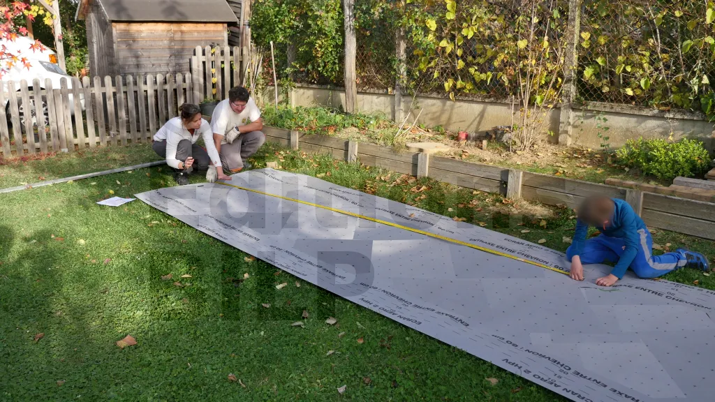 Déroulez le pare-pluie sur une surface plane et reportez les dimensions des coupes.