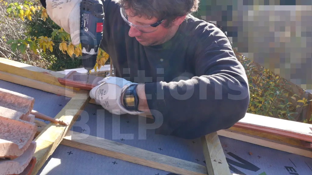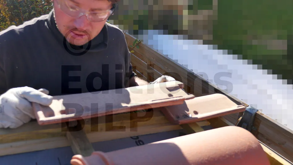 La mise en place des tuiles à emboîtement (1 min)