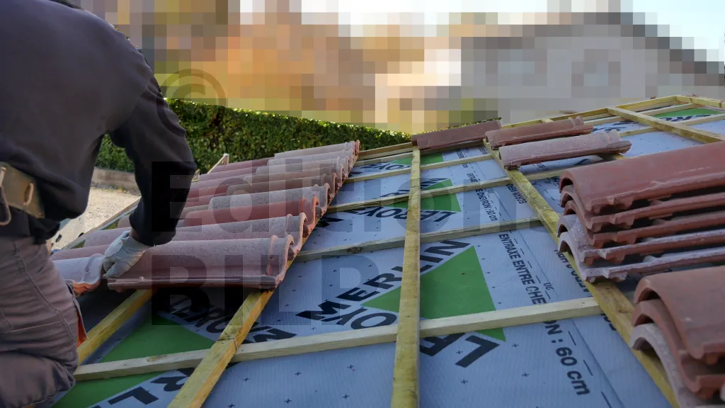 La mise en place des tuiles à emboîtement
