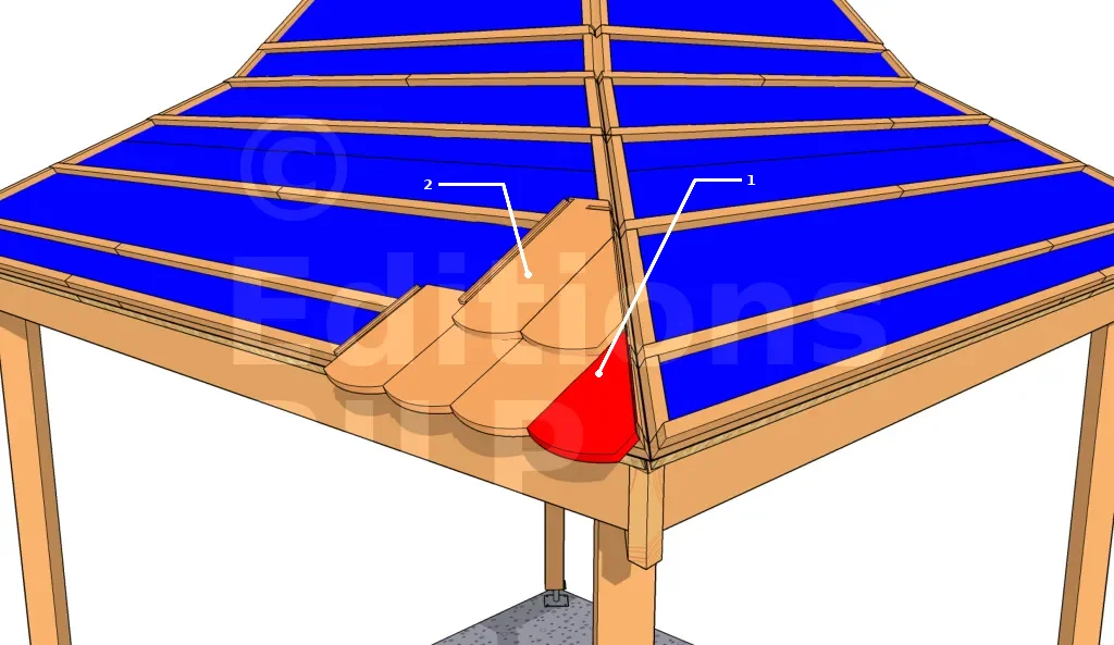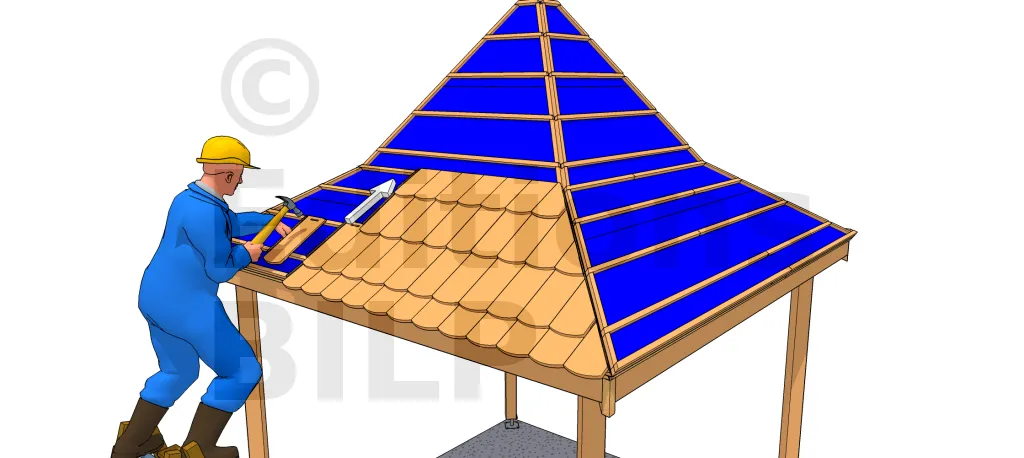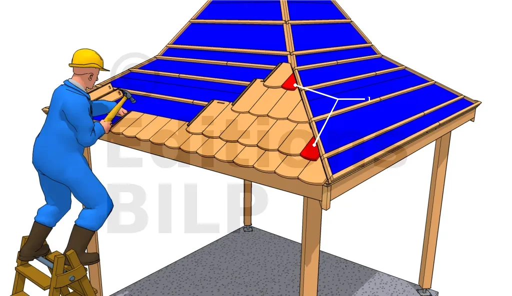 Poser en premier la rive droite. Cette rive va de l’égout jusqu’au faîtage. Puis, poser en fil verticale la première rangée. Depuis l’égout vers le faîtage.