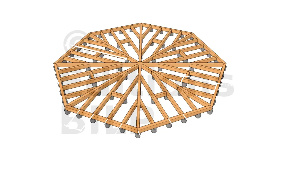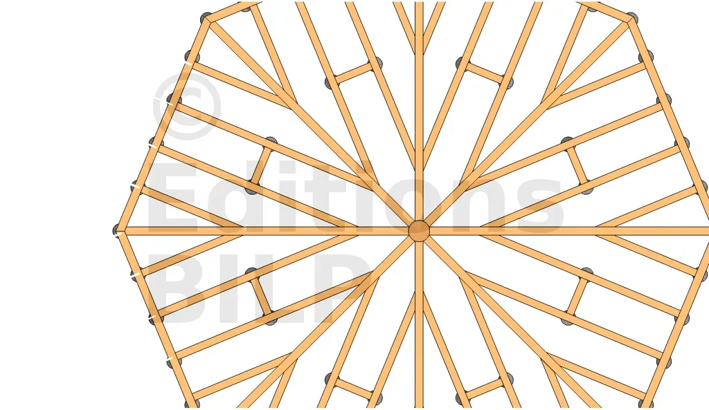 Nous savons que la conception d’une plateforme polygonale va se faire de la même façon qu’une structure sur plots en béton ou sur plots PVC. C’est-à-dire que chaque point d’intersection sera supporté par un support.