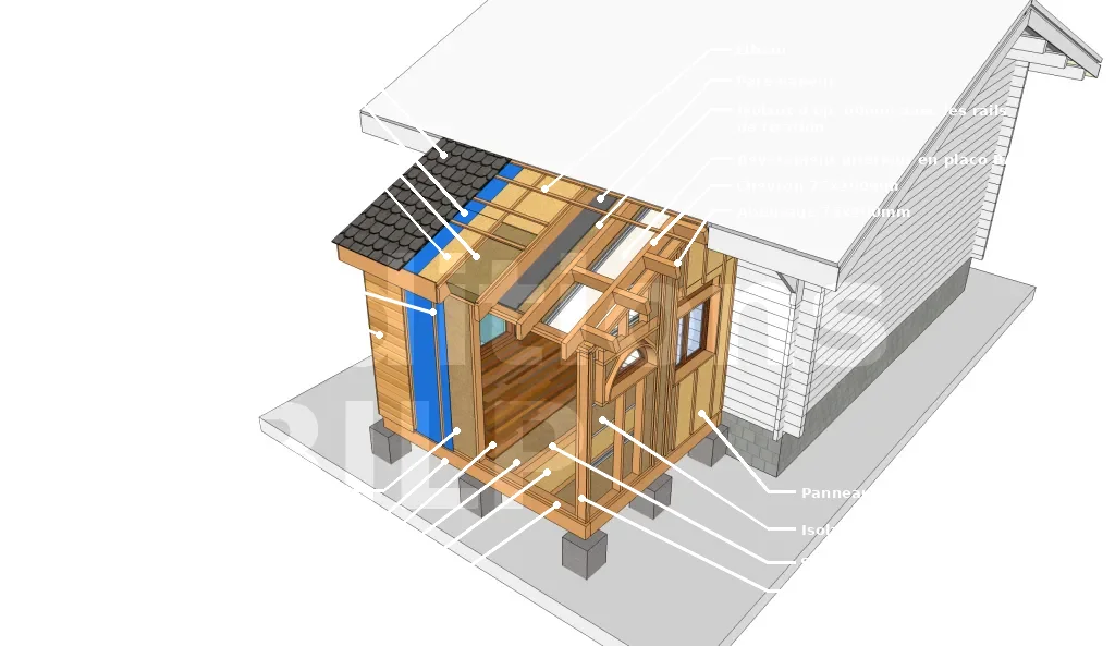 - Type de plafond : Panneau OSB ou particules 18 mm