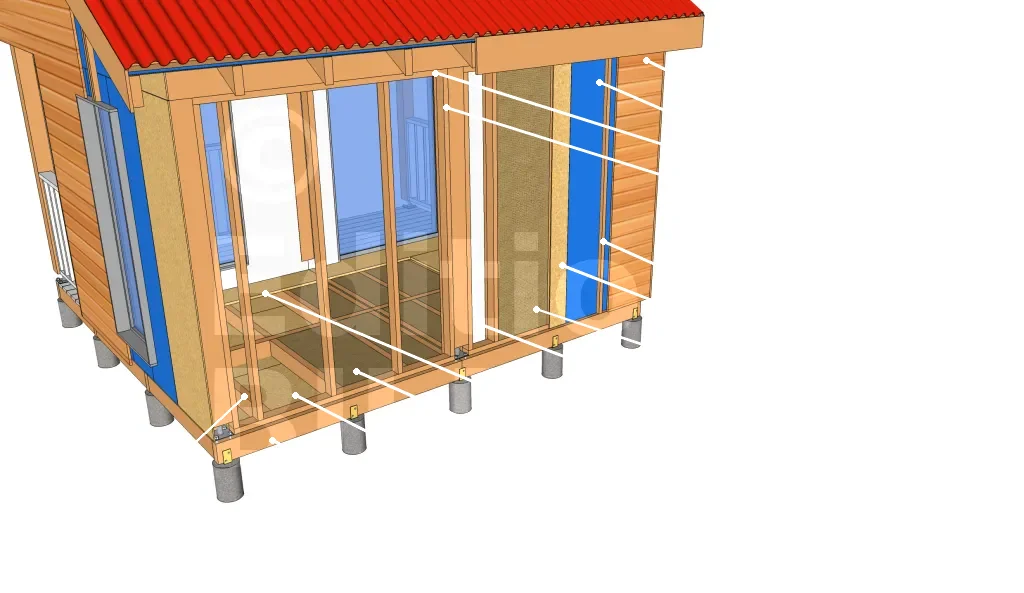Les ossatures de 45 x 95 [mm] sont espacés de 58 cm pour la mise en place des isolants.