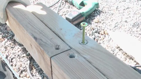 au moyen de tirefonds D8 ou de vis pour connecteurs tête Torx. En cas d’aboutage de deux poutres, fixer un connecteur métallique plat pour améliorer la cohésion.