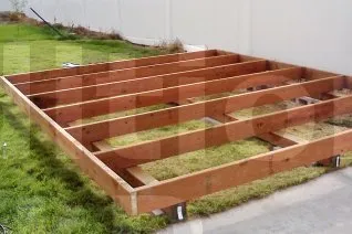 Les fondations sur patins représentent la solution la plus facile pour construire puis déplacer. Les patins vous autorisent de déplacer la construction à un nouvel endroit si vous le désirez. Les patins sont composés typiquement des bastaings en bois traité classe 4, de section 63x175 environ ou de plus grandes sections selon la charge.